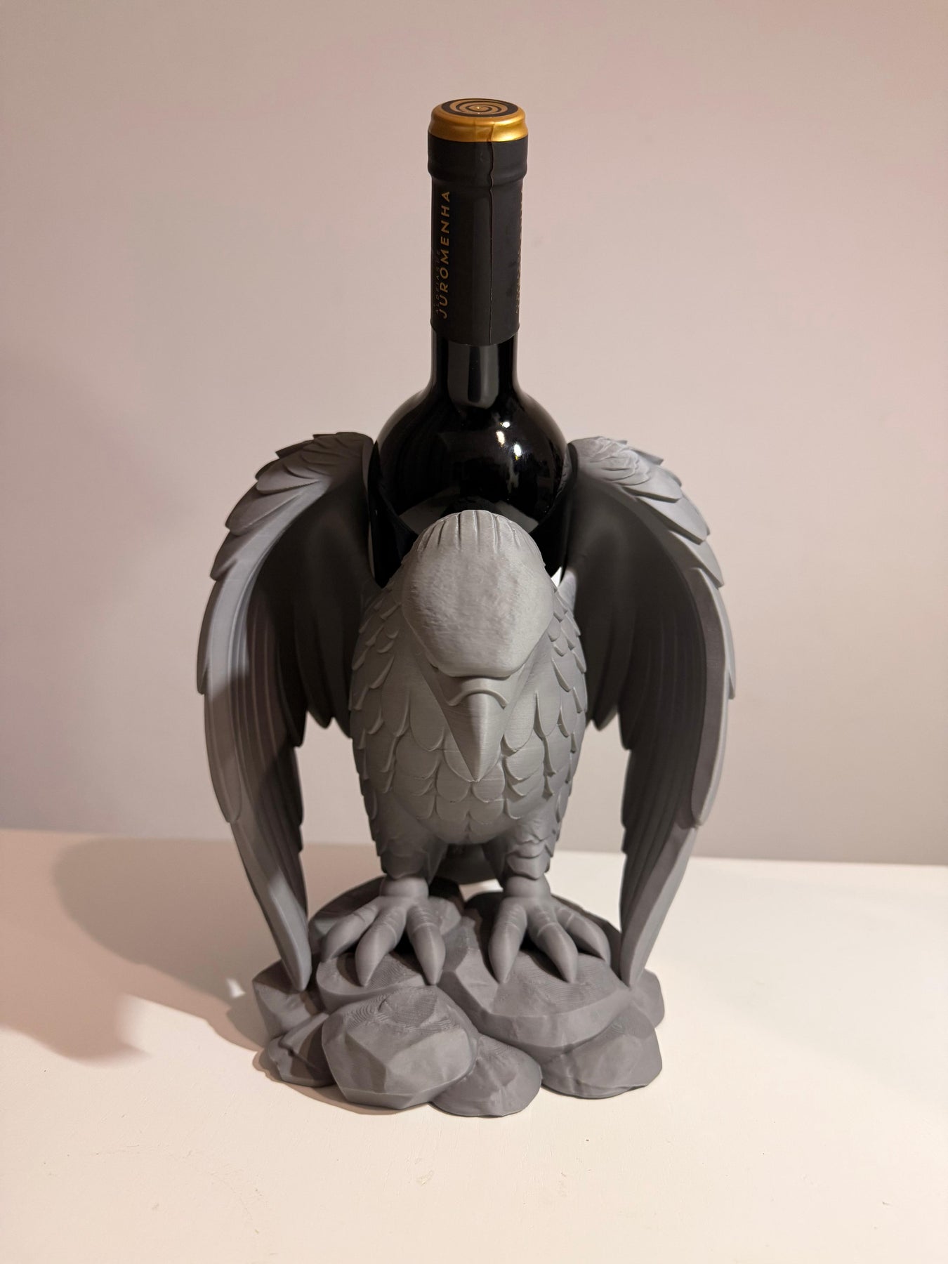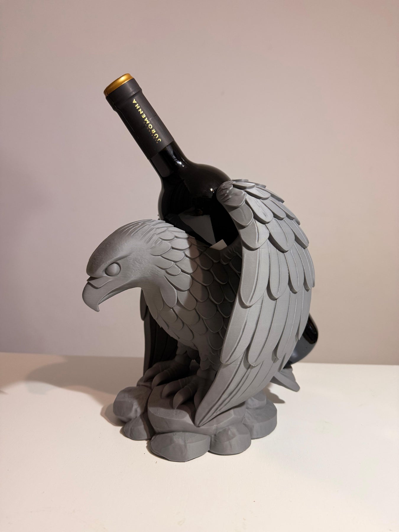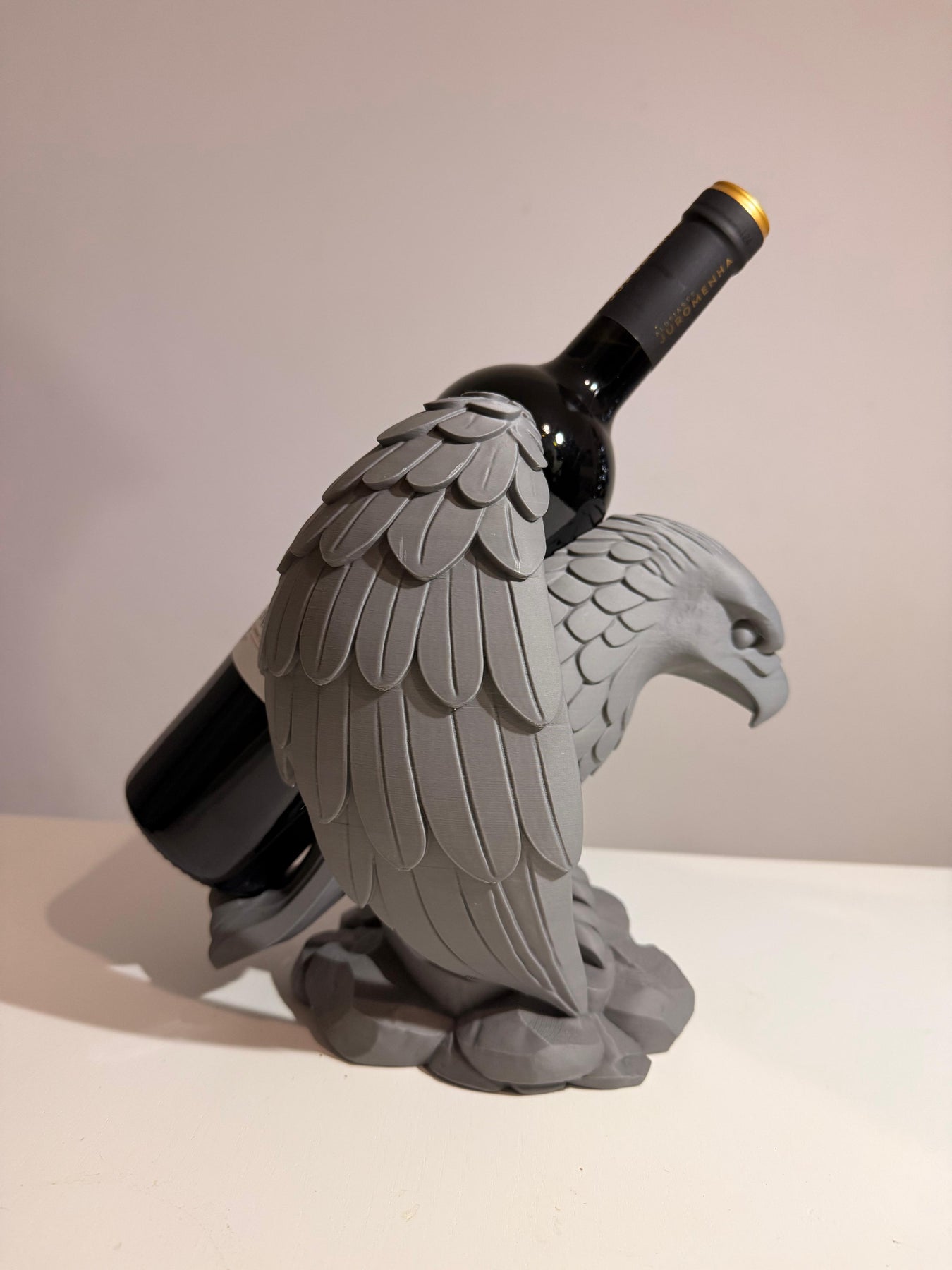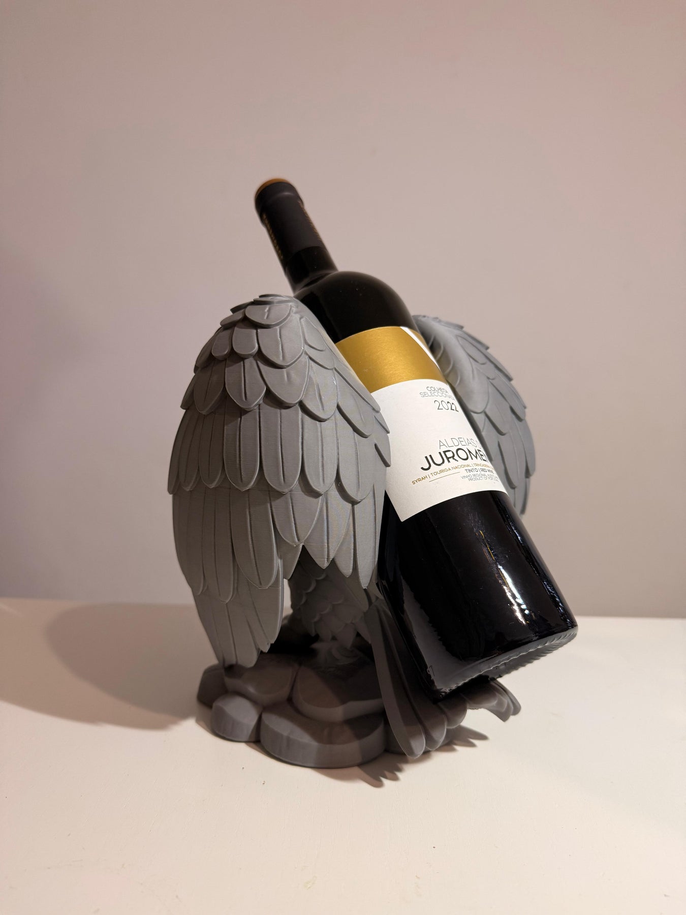 Projetado para os amantes de vinho e de design, esta peça escultural transforma uma simples garrafa em uma obra de arte. A figura imponente da águia, com suas asas detalhadas e postura majestosa, não só protege sua garrafa, mas também adiciona um elemento de design arrojado e elegante ao seu espaço.