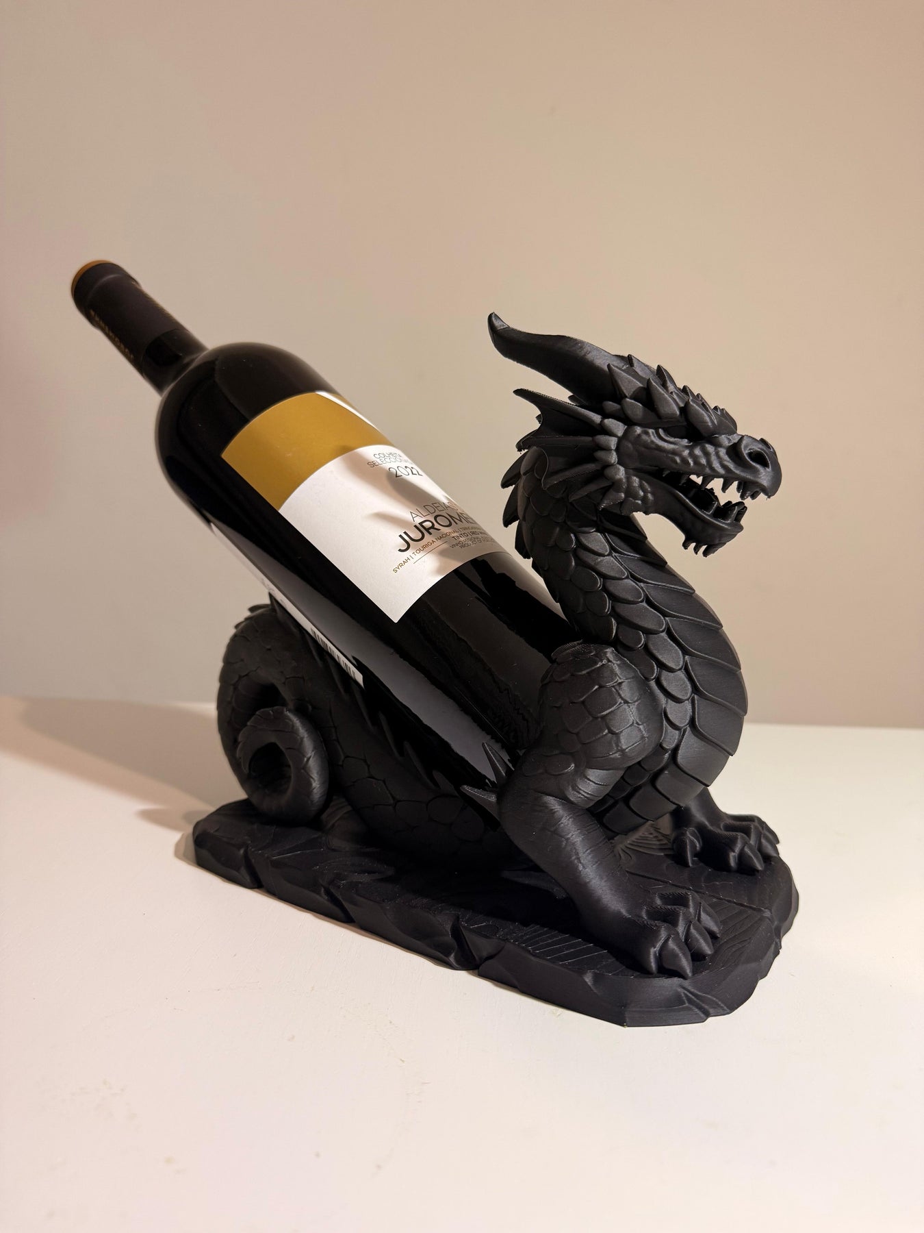 Adicione um toque de sofisticação e força à sua decoração com o nosso Suporte para Garrafa de Vinho em formato de Dragão.